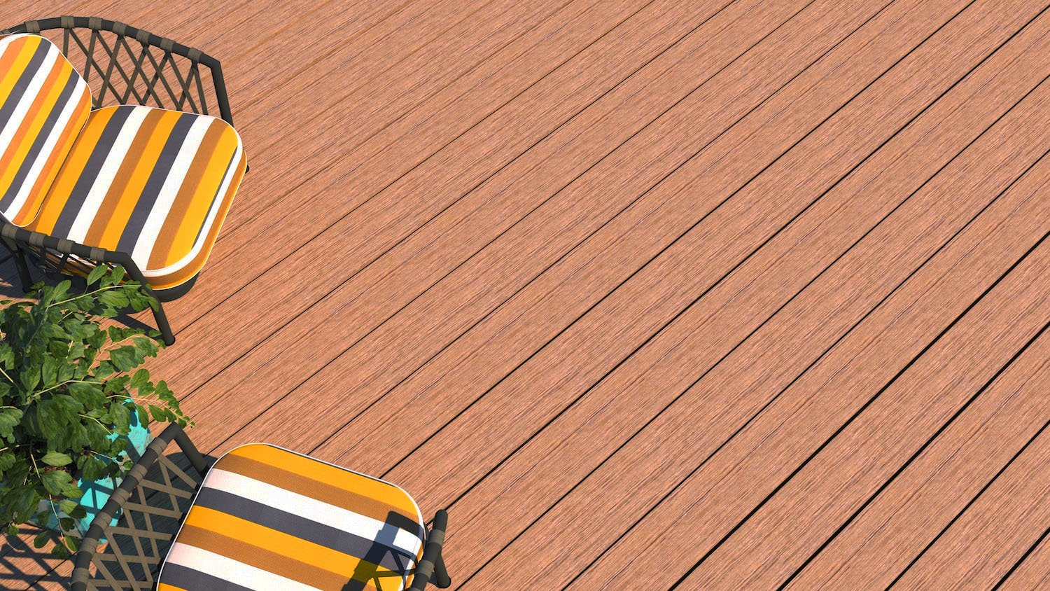Su diseño símil madera aporta calidez y estilo natural a cualquier espacio al aire libre, sin los problemas típicos de la madera tradicional: no se astilla, no se deforma y no requiere barnizado ni pintura. Además, está disponible en dos tonos por cada lama (dual), lo que permite más flexibilidad estética en la instalación.