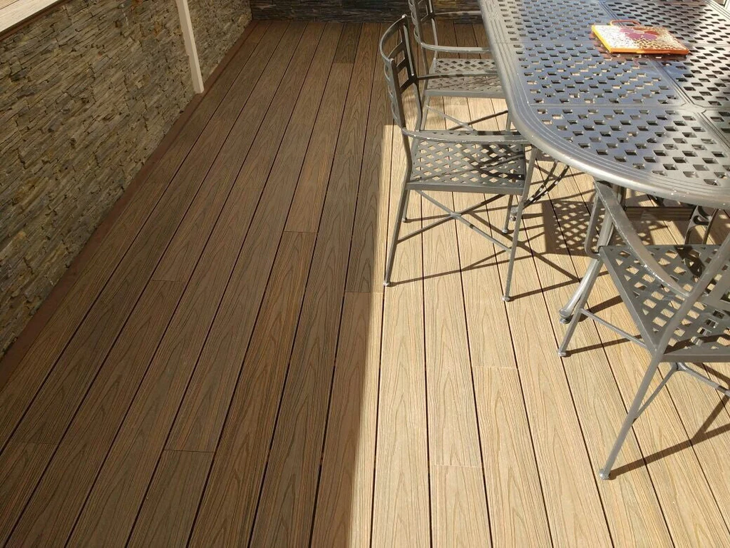 Su diseño símil madera aporta calidez y estilo natural a cualquier espacio al aire libre, sin los problemas típicos de la madera tradicional: no se astilla, no se deforma y no requiere barnizado ni pintura. Además, está disponible en dos tonos por cada lama (dual), lo que permite más flexibilidad estética en la instalación.