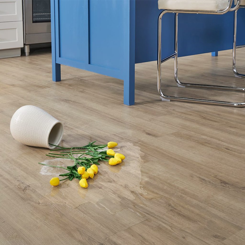 Composición: Capa Central HDF de madera reciclada de alta densidad 100% waterproof, aglutinada con resina para evitar infiltraciones. Incluye capa decorativa Real Wood y overlay waterproof.