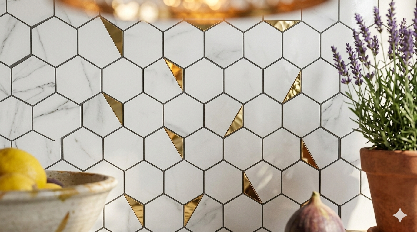 Placa Azulejo Autoadhesiva Panal de Oro 30 x 30 cm