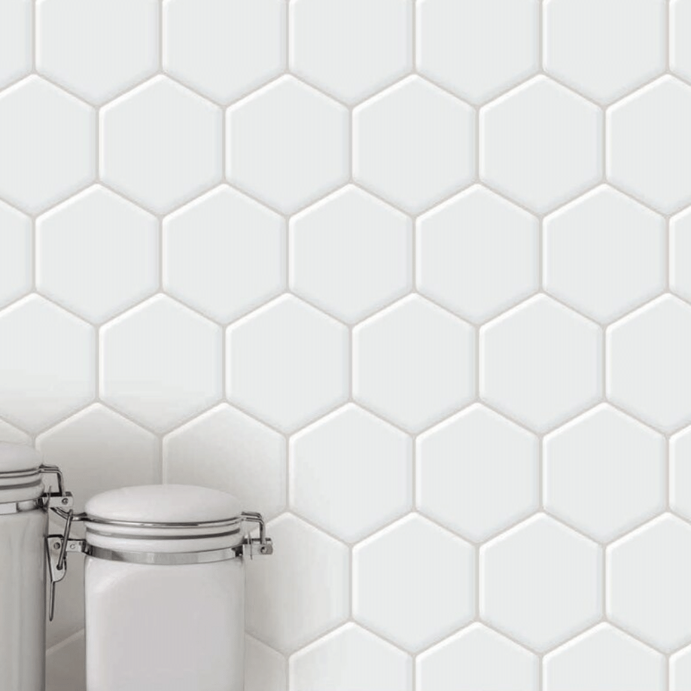 Placa Interior Cerámica Autoadhesiva Hexagono Blanco 25 x 25 cm